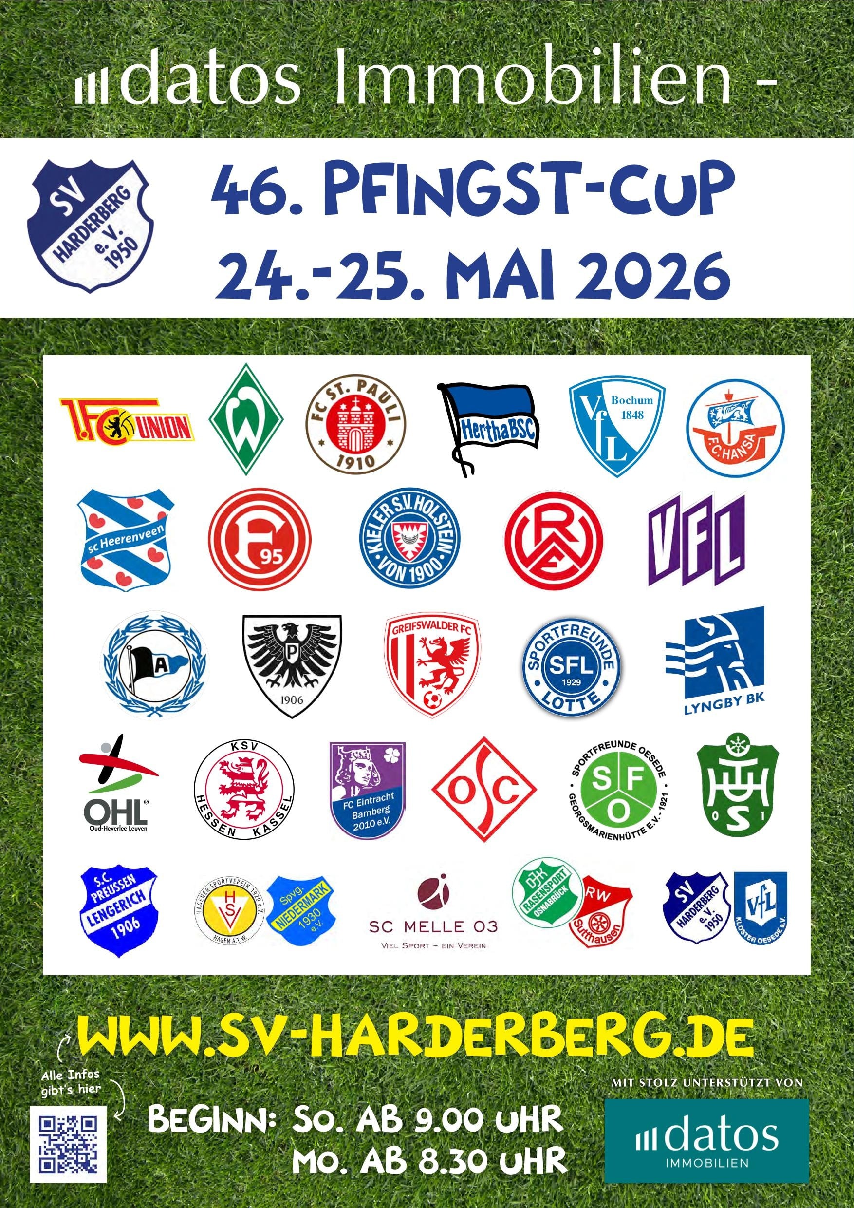 Am 24. und 25. Mai 2026 ist es wieder soweit: Der SV Harderberg lädt zum mittlerweile 46. Pfingst-Cup ein – einem der traditionsreichsten Jugendturniere der Region. In diesem Jahr messen sich talentierte Nachwuchsspieler der Altersklasse D-Jugend und versprechen Fußball auf hohem Niveau.